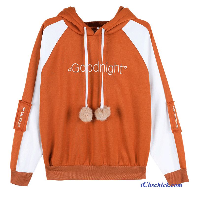 Lambswool Kapuzenpullis Damen Orangenfarbig, Dünne Kapuzenpullis Damen Billig