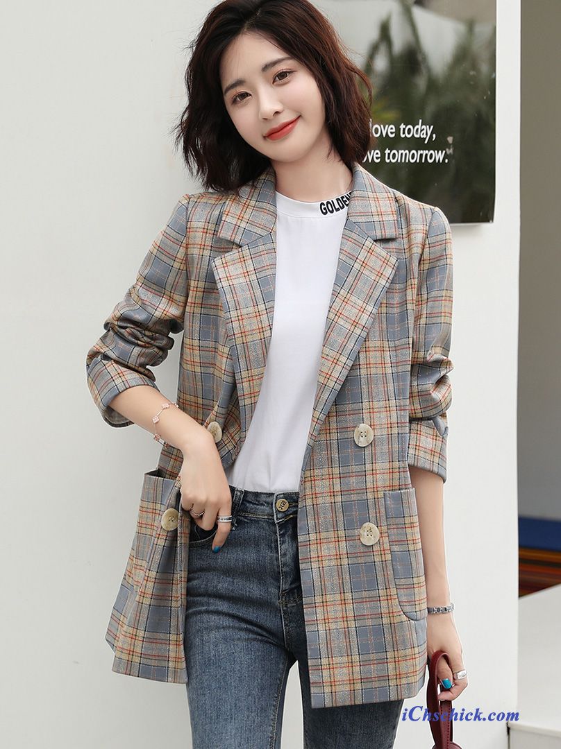 Bekleidung Anzugjacke Temperament Blazer Mantel Damen Herbst Grau Hell Online