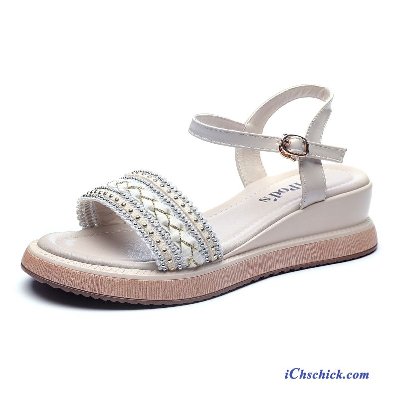 Schuhe Sandalen Dick Frisch Damen Sommer Neue Weiß Gold Online