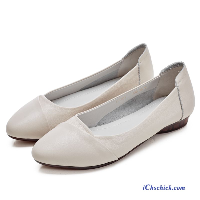 Schuhe Halbschuhe Echtleder Flache Mokassins Allgleiches Große Größe Weiß Beige Discount