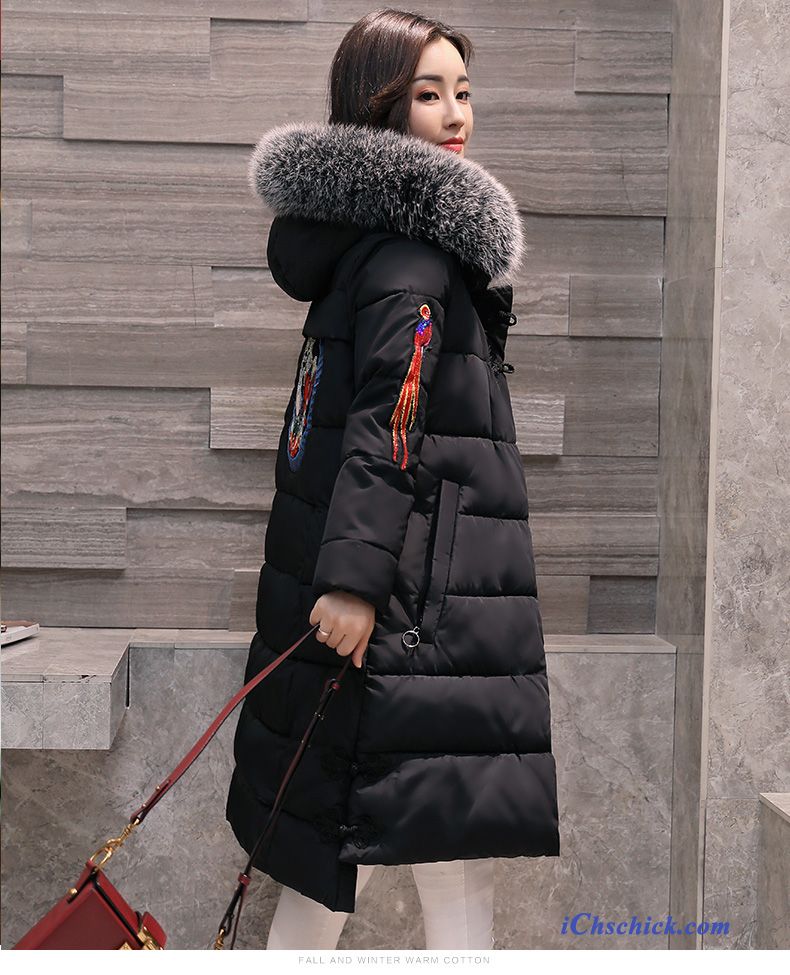 Bekleidung Baumwolle Mantel Pelz Kragen Damen Winter Bestickt Neu Rot Billige