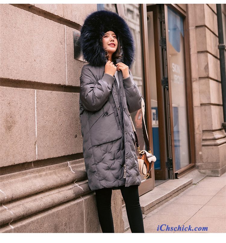Bekleidung Daunenjacken Warme Rein Mode Freizeit Stadt Grau Dunkel Sale