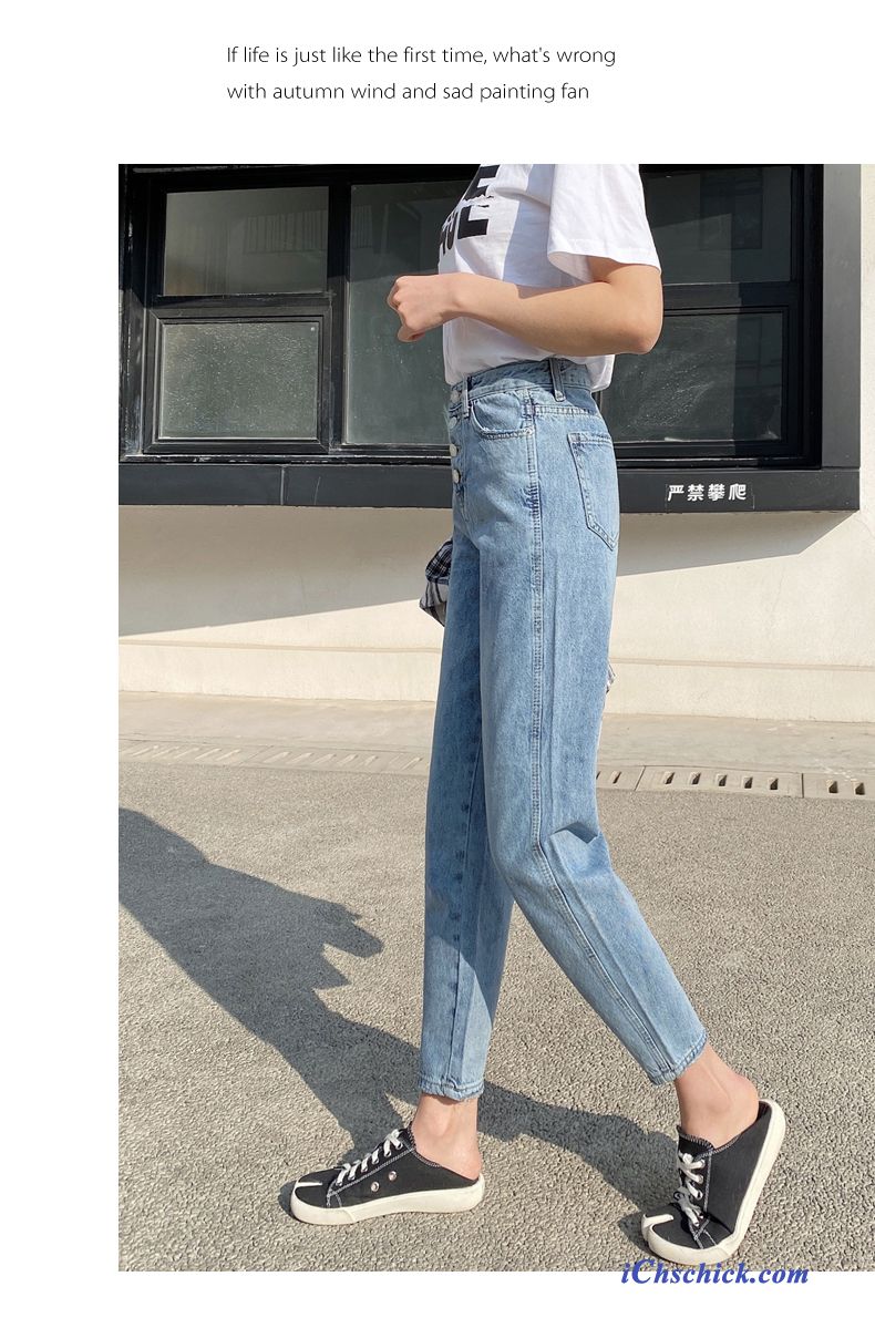 Bekleidung Jeans Lose Harlan Gerade Damen Hohe Taille Blau Hell Kaufen