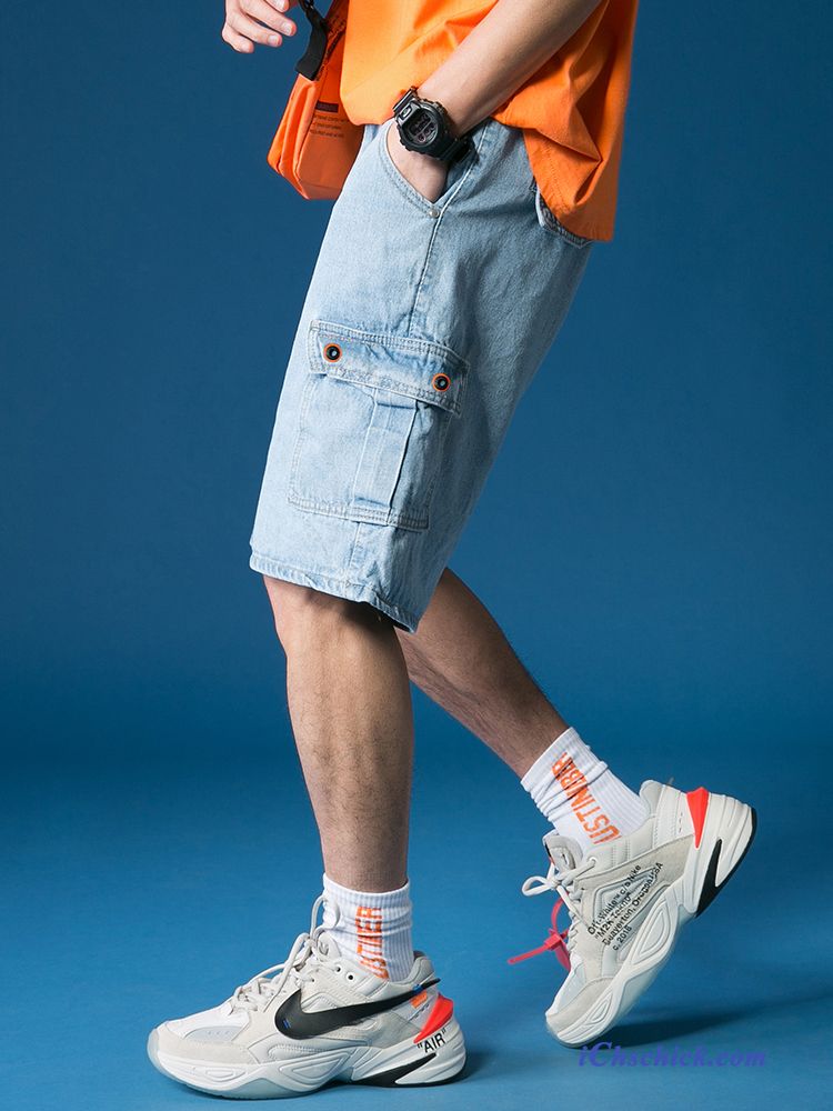 Bekleidung Kurze Hosen Lose Sommer Freizeit Herren Gerade Blau Billige