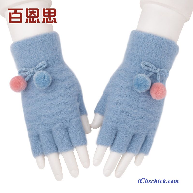 Damen Handschuhe Warm Halten Pelzball Winter Student Wolle Rot Kaufen
