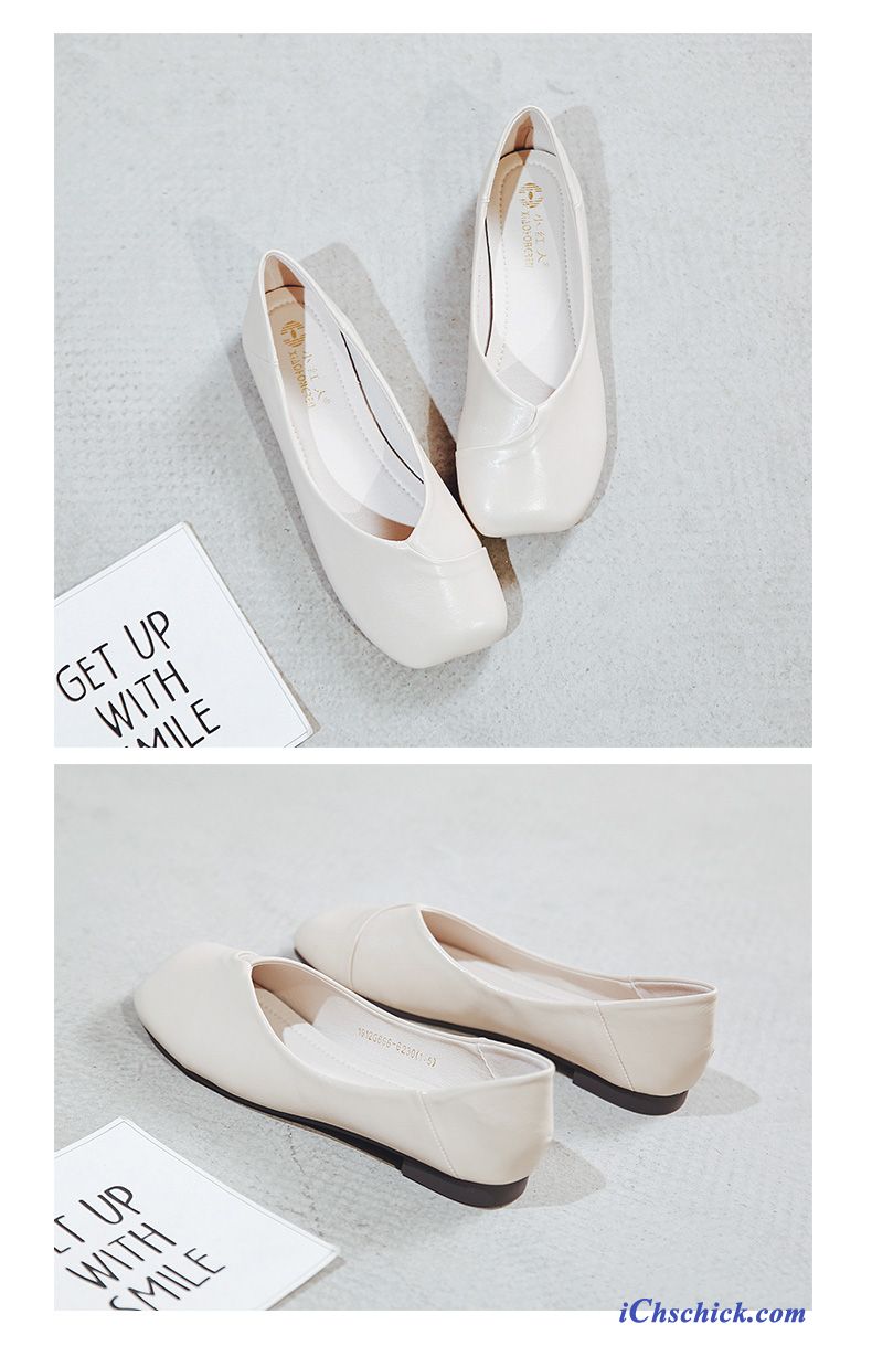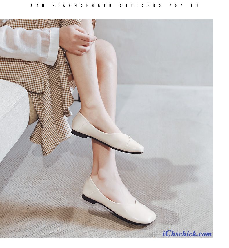 Schuhe Halbschuhe Damen Feder Weiche Sohle Vierkantkopf Mokassins Schwarz Hell Rot Billige