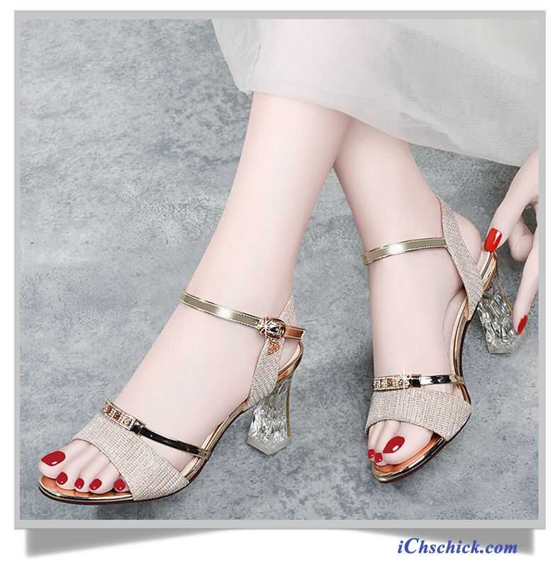 Schuhe Sandalen Kristall Dick Neue Peep-toe Allgleiches Gold Billige