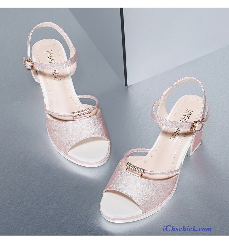 Schuhe Sandalen Rom Mittlere Ferse Allgleiches Neue Dick Silber Billig