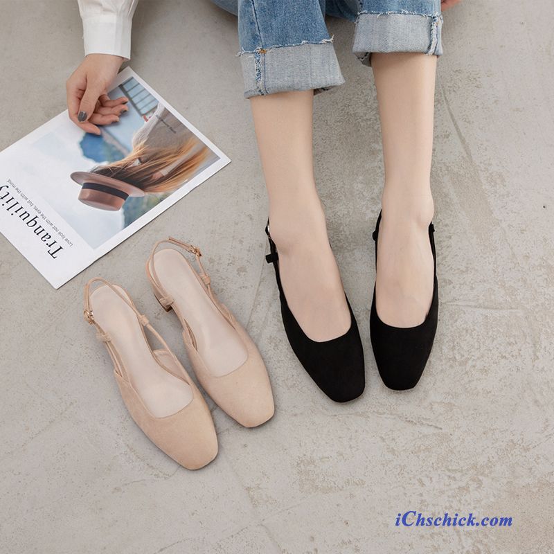 Schuhe Sandalen Sommer Allgleiches Dick Damen Mittlere Ferse Schwarz Sale